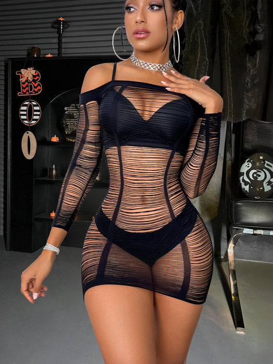 Women's Sexy Hollow Out Mesh Outfit Lingerie Set شبك قطعتين