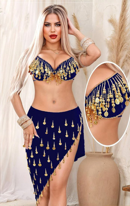 Fantasy Costume Mesh & Gold Sequin Belly Dancer Costume Set