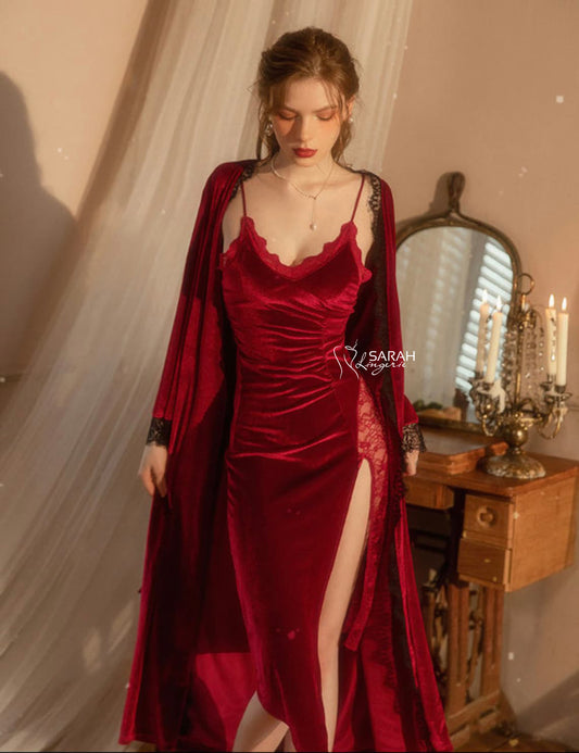 Long Nighty&robe Set Lady Sexy Mesh Sleeve Kimono Robes White Bride Wedding Morning Gown Luxury روب ابيض شيفون مع قميص