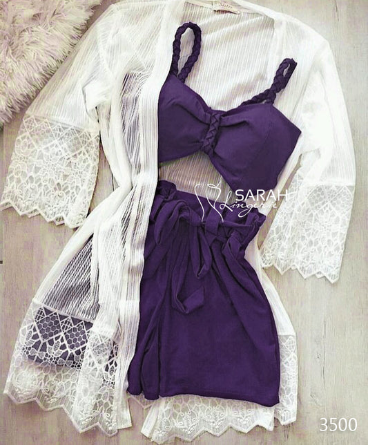 Sexy Seersucker Ruffled Mesh Embroidery Lingerie قميص ابيض شفاف بكب