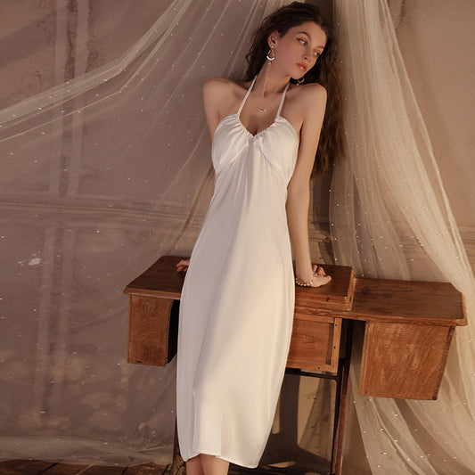 Lace Patchwork Plunging V-Neck Hollow Out Heart Embroidery Backless Sexy Women Nightgown Lace Lingerie Dress ,Vacation