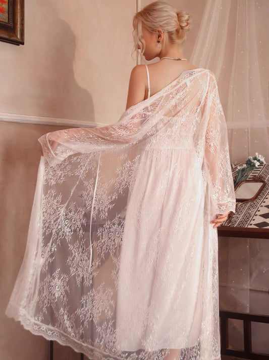 Romantic Mesh & Lace Patchwork Robe Set Sleepwear Set For Women قطم اول ليلة قطعتين