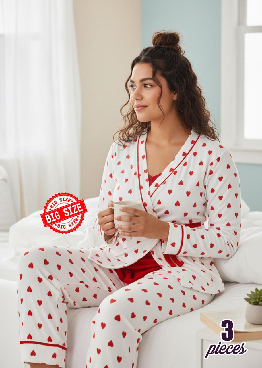 بيجامة قطن قطيفه مبطنه عالي الجوده 3 قطع مقاس كبير