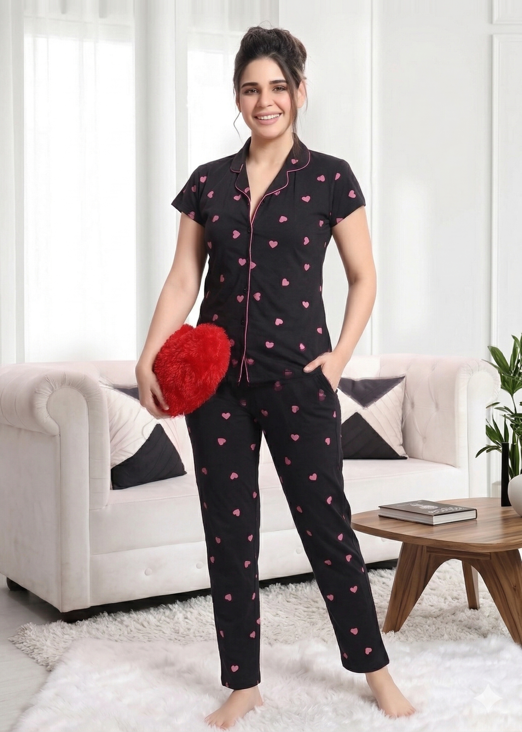 بيجامه قطن عالي الجودة نقسة قلوب