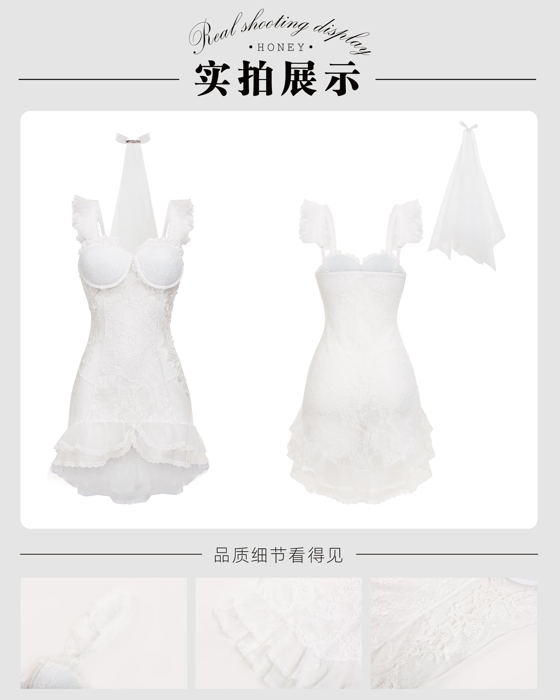 Lace Up Front Contrast Mesh Lace Garter Corset Lingerie Set طقم شبك مع شراب
