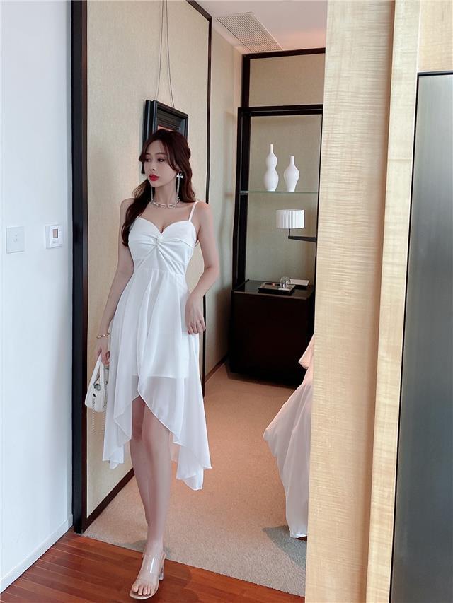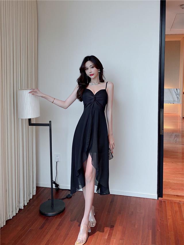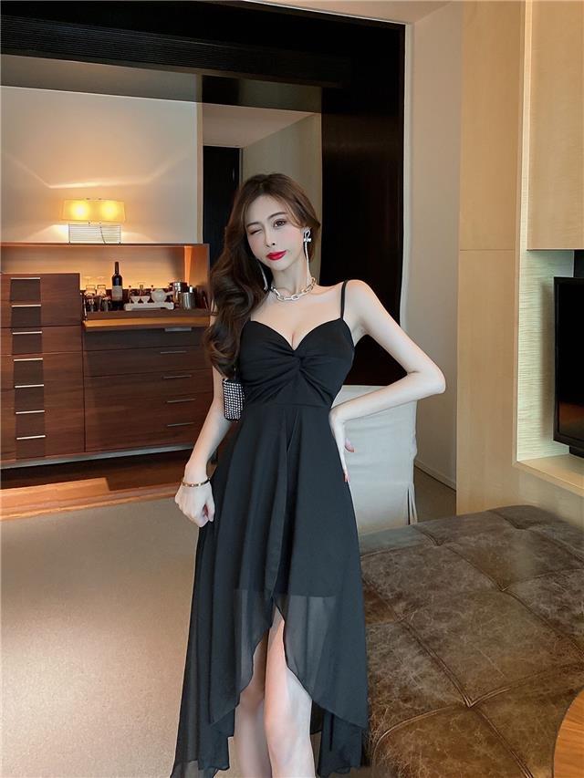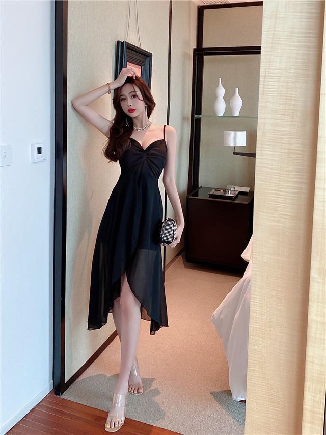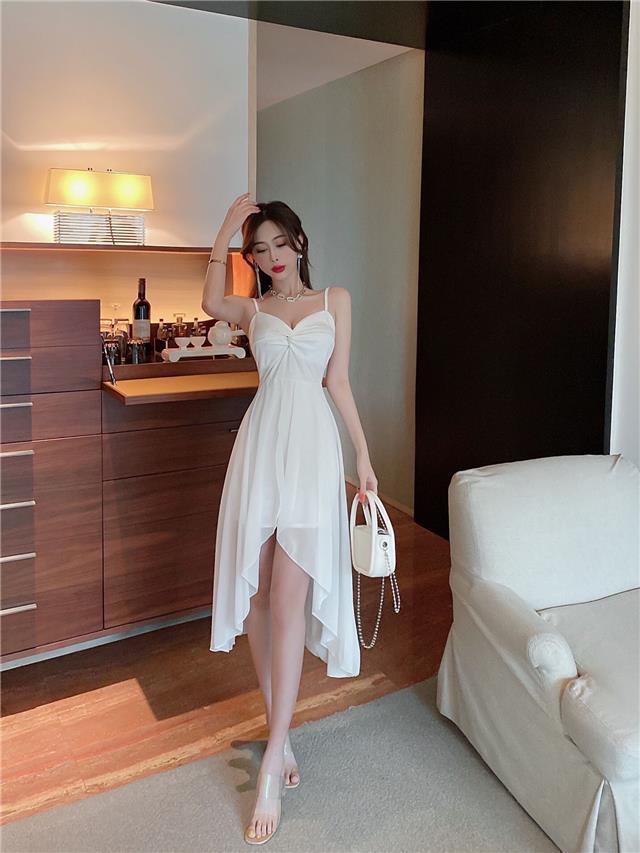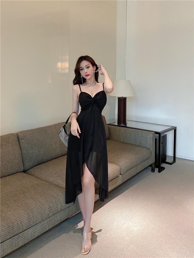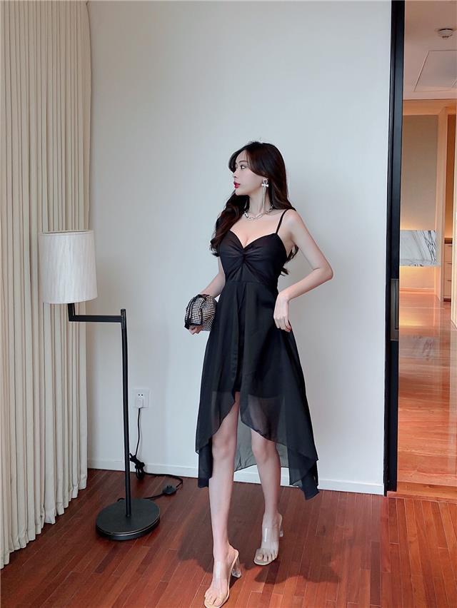 طقم 3 قطع مع سلسله حزام-Piece3 Set Drawstring Waist Slimming Long Dress+Thong+Chain Decor Belt