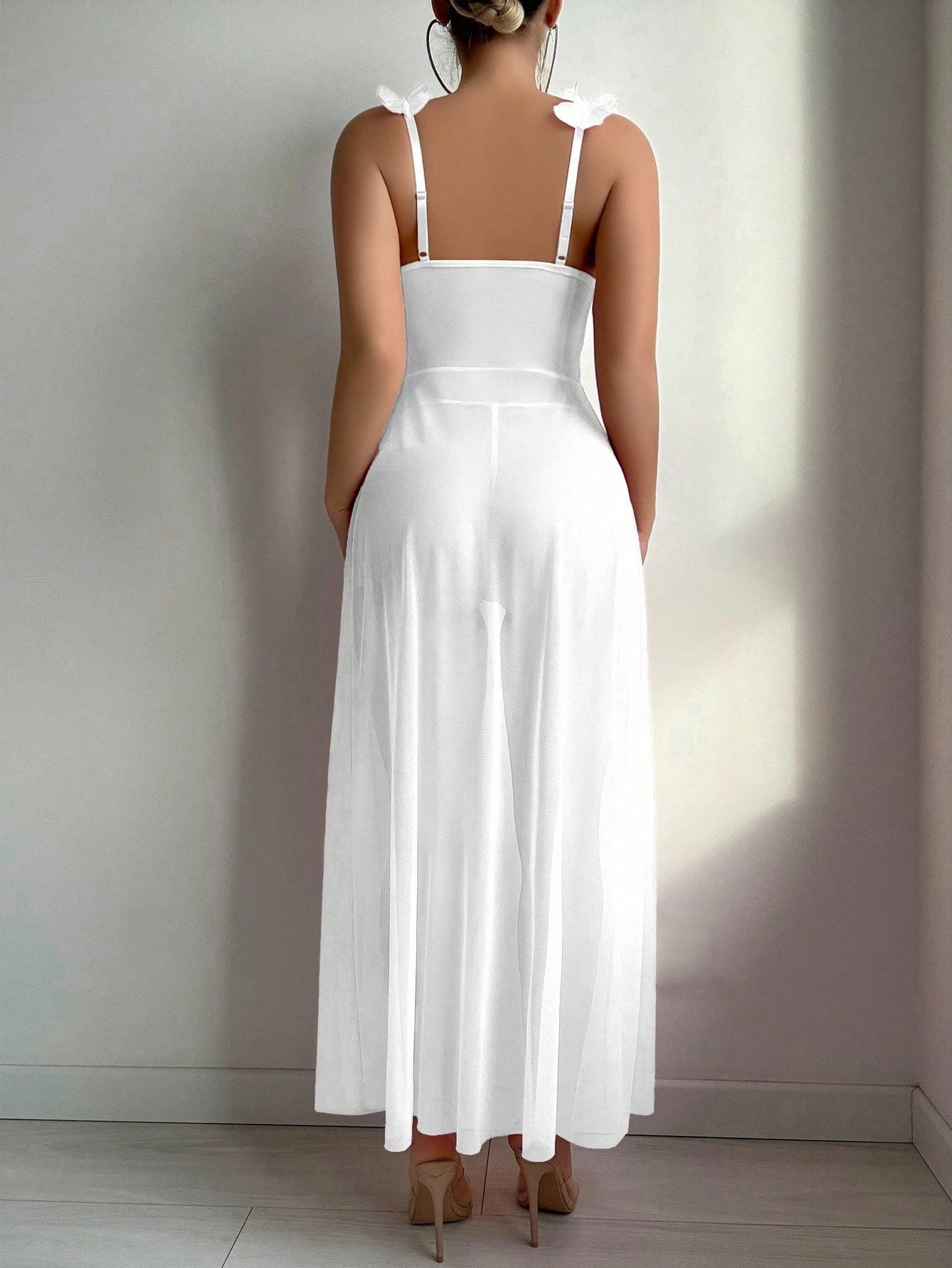 Sexy Erotic Transparent Woman Dress Solid Color Long Mesh Nightwear فستان تول طويل مشجر