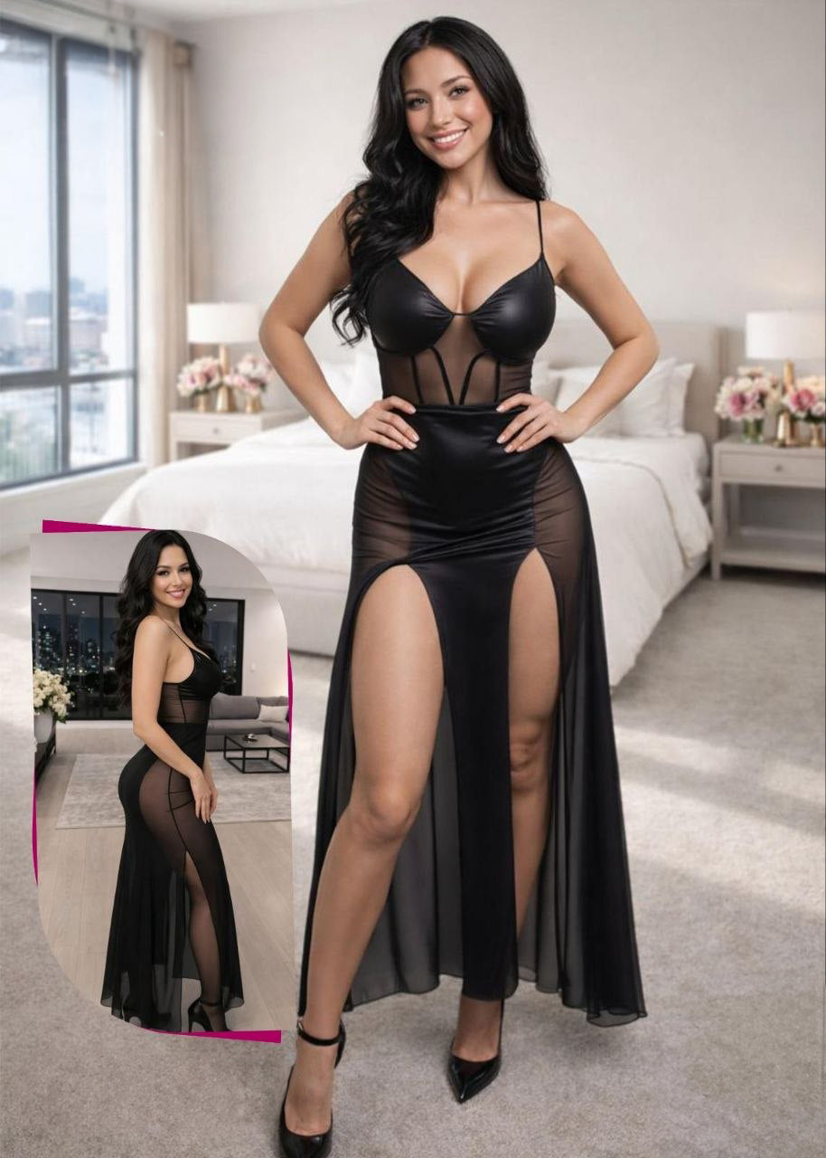 طقم 3 قطع مع سلسله حزام-Piece3 Set Drawstring Waist Slimming Long Dress+Thong+Chain Decor Belt