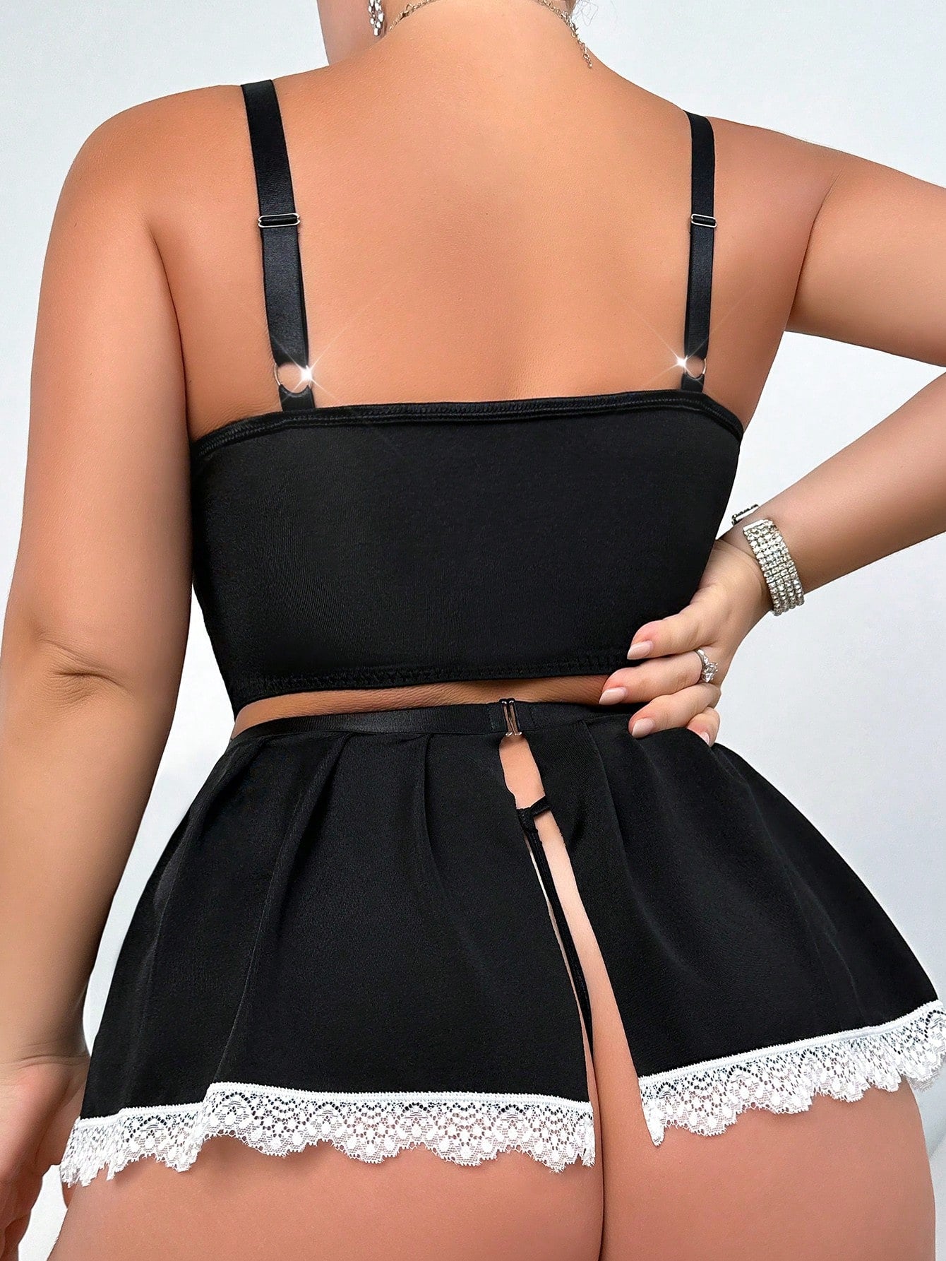 Fantasy Costume Set Lingerie Set With Underwire Support, Lace-Up Ribbon