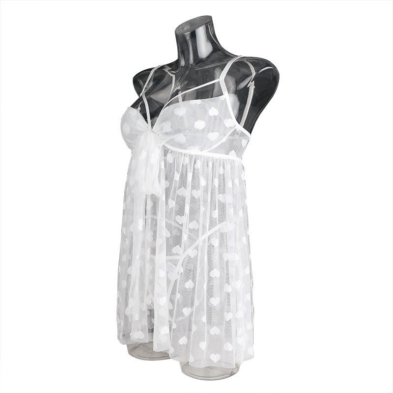 Sexy Open Bust Heart Mesh Irregular Hem Backless Valentine's Day Halter Set