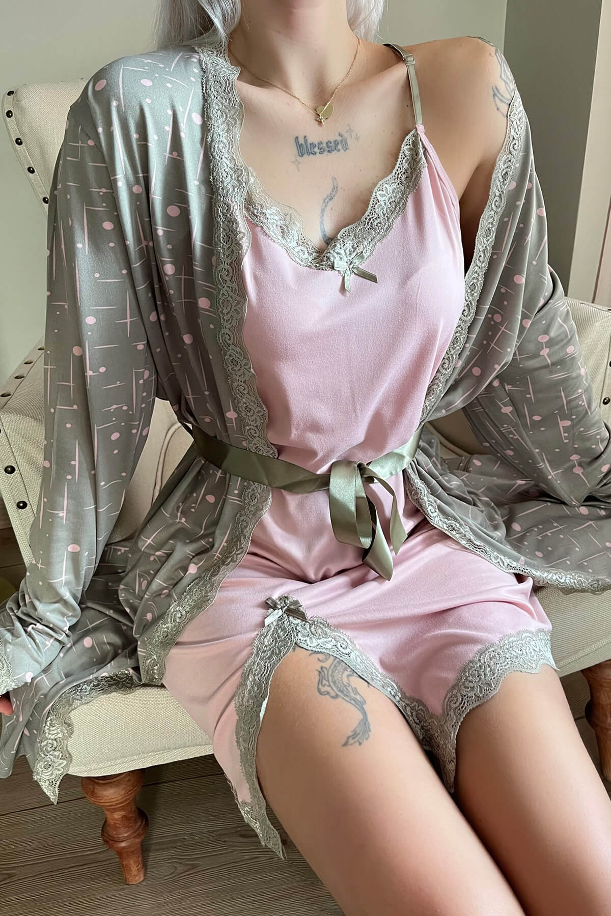 بيجامة قطن عالي الجودة قطعتين روب مع قمبص